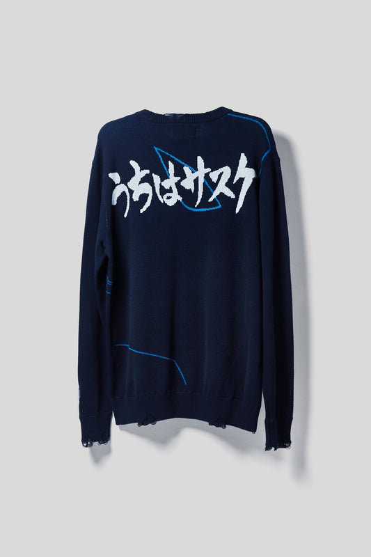 NARUTO 20Y SASUKE DISTRESSED KNIT SWEATER