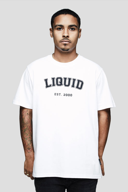 LIQUID VARSITY FONT SHORT SLEEVE TEE - WHITE