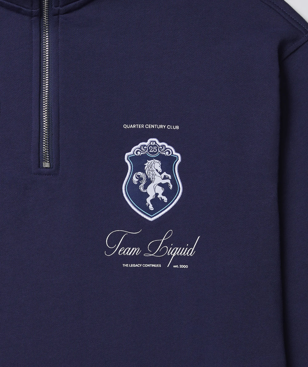 Quarter-century vibes, full-time style. The Quarter Century Half Zip keeps you cozy, sharp, and repping 25 years of Liquid dominance, no cheat codes required.