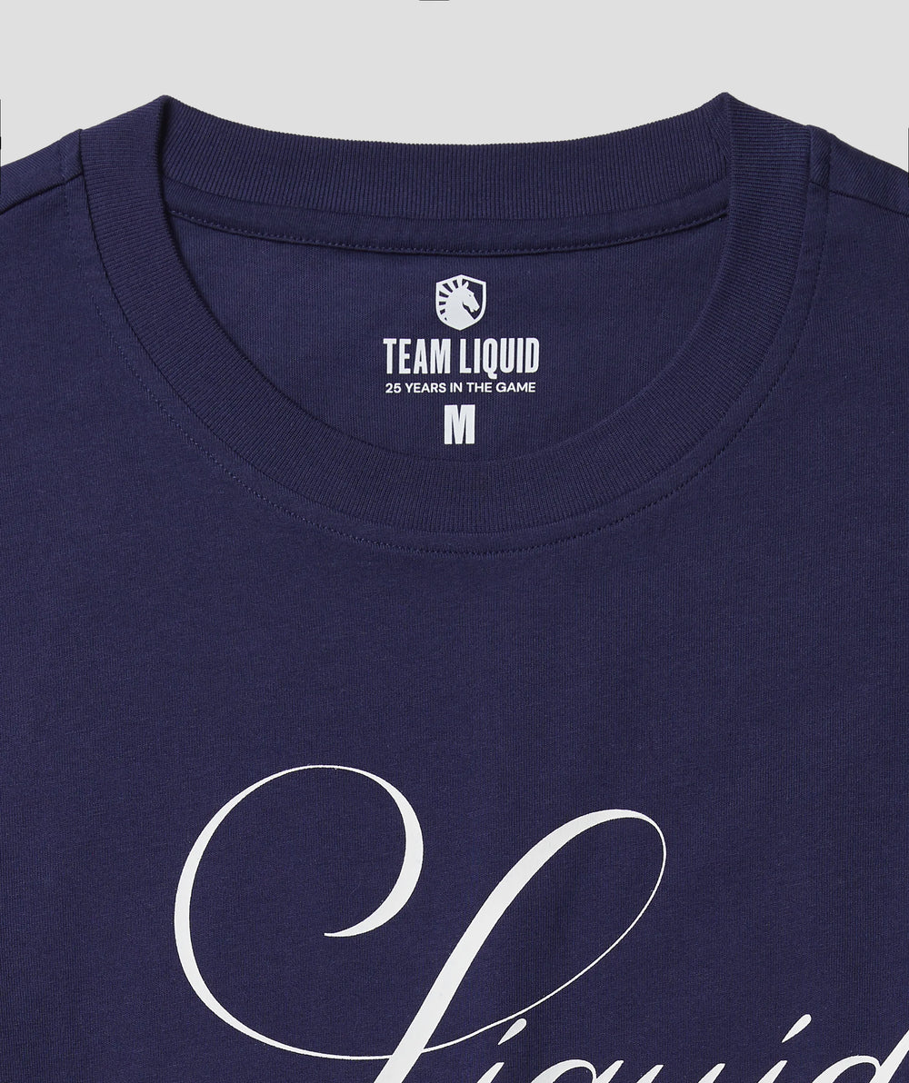 Celebrate 25 years of competitive legacy with the Team Liquid Quarter Century Legacy Tee. Crafted in a rich navy blue, paired with the iconic Team Liquid crest for a bold yet timeless look.